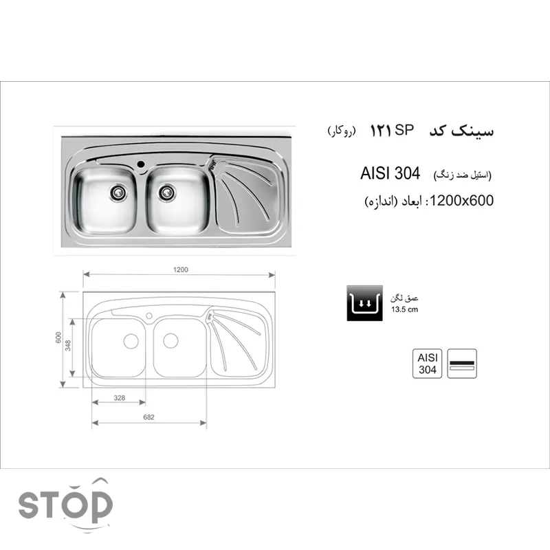 فروشگاه اینترنتی استاپ / فروشگاه / سینک ظرفشوی / سینک رو کار اخوان کد 121sp