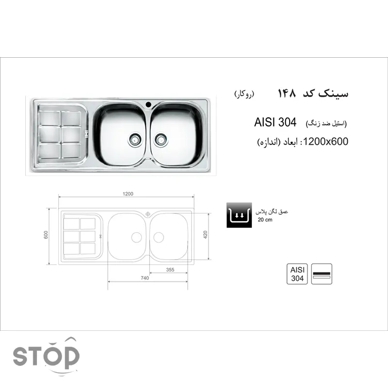 فروشگاه اینترنتی استاپ / فروشگاه / سینک ظرفشوی / سینک رو کار اخوان کد 148