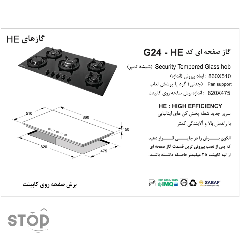 فروشگاه اینترنتی استاپ / فروشگاه / تجهیزات توکار آشپزخانه / گاز / گاز صفحه ای / اجاق گاز صفحه ای اخوان مدل G24-HE
